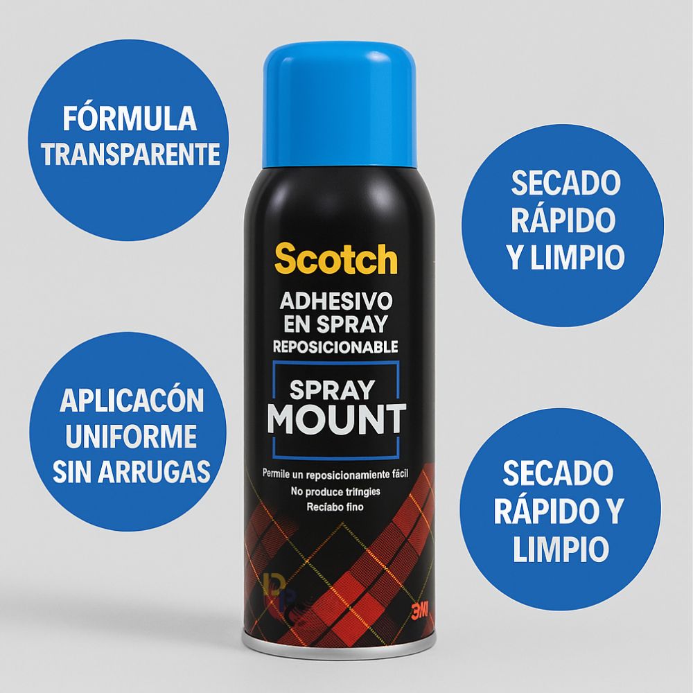 El Adhesivo en Aerosol Spray Mount Scotch 3M es el aliado perfecto para trabajos creativos que requieren una unión temporal y limpia. Su fórmula reposicionable te da la libertad de ajustar y corregir, mientras que la aplicación uniforme evita arrugas en materiales delicados como el papel y el acetato.
