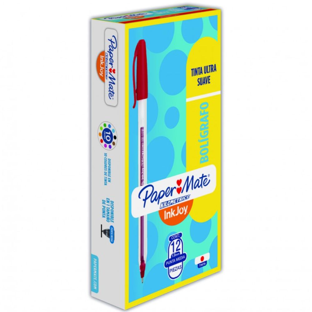 Caja 12 Bolígrafos Berol Kilométrico 1.0 mm | Tinta Inkjoy, Negro, Rojo, Azul