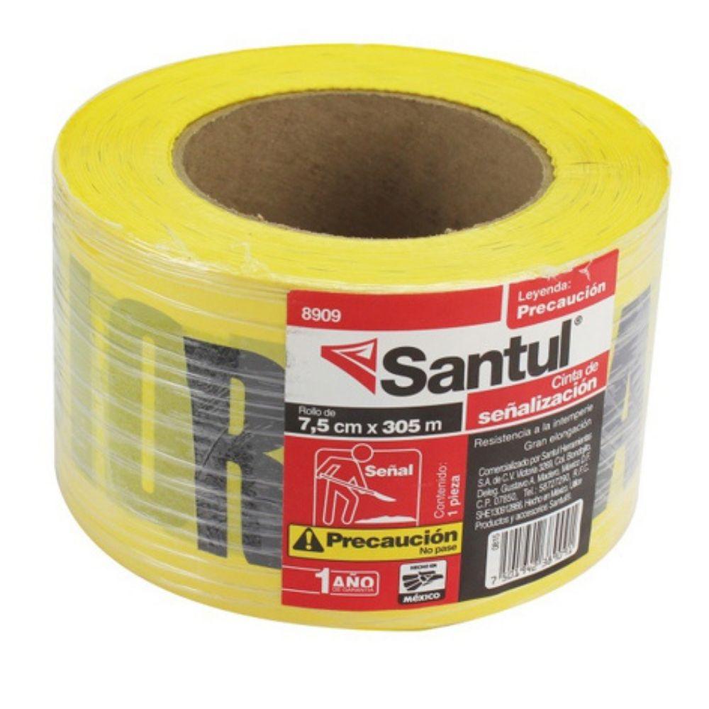 Delimita áreas de riesgo y garantiza la seguridad con la **Cinta de Señalización Santul modelo 8909**. Fabricada con **polietileno de alta calidad**, esta cinta de **305 metros** de largo por **75 milímetros** de ancho es resistente y duradera, ideal para uso en exteriores.