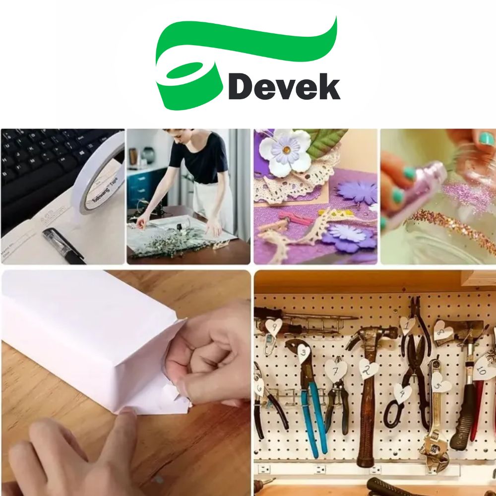 La Cinta Adhesiva Doble Cara DEVEK  es una solución de fijación de alta resistencia, ideal tanto para la industria gráfica como para proyectos detallados de oficina y decoración. Su diseño de doble capa de polipropileno garantiza un soporte firme y confiable.