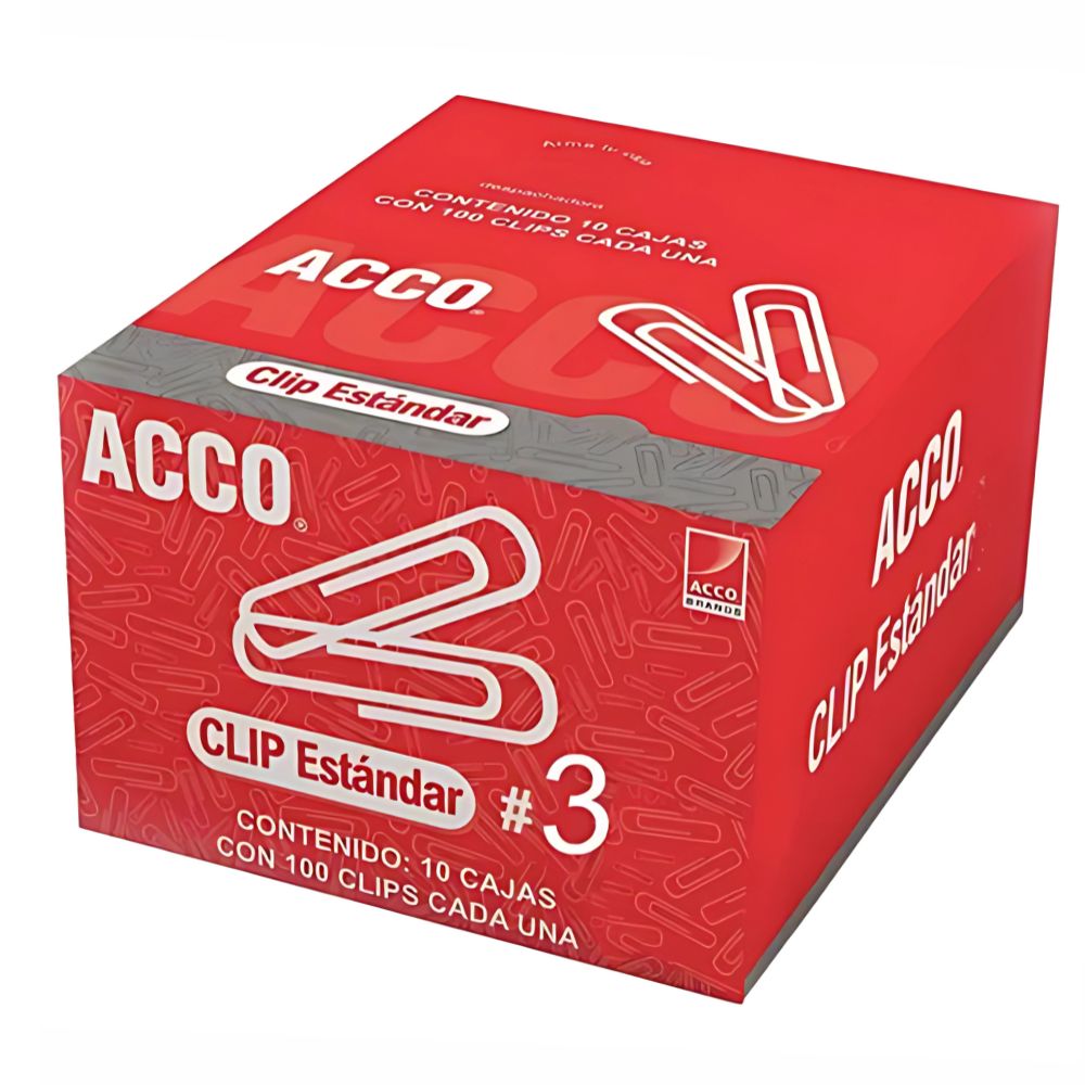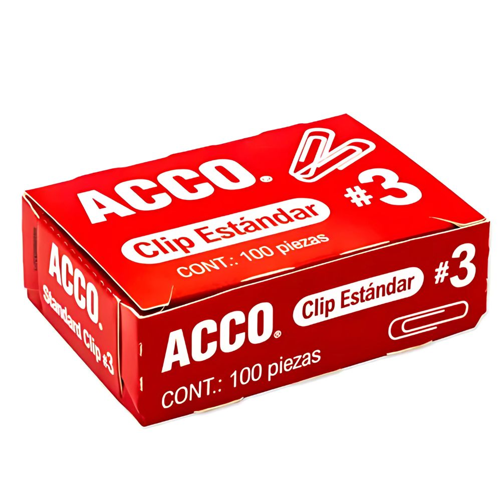 Mantén tus documentos perfectamente ordenados con la confiabilidad de un clásico. El **Clip Estándar Acco N.º 3** es la herramienta ideal para la oficina, escuela o el hogar. Este paquete incluye **100 piezas** diseñadas para sujetar hasta **15 hojas** de forma segura y sin dejar marcas.