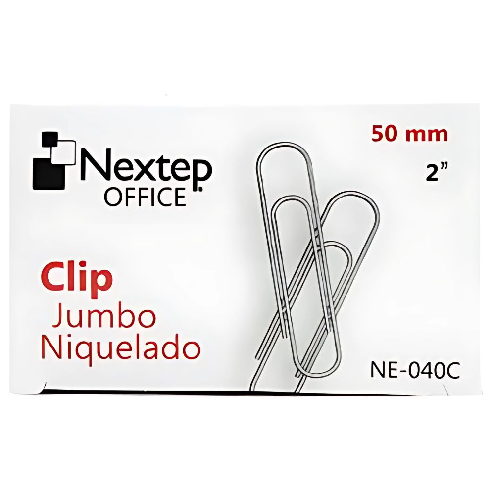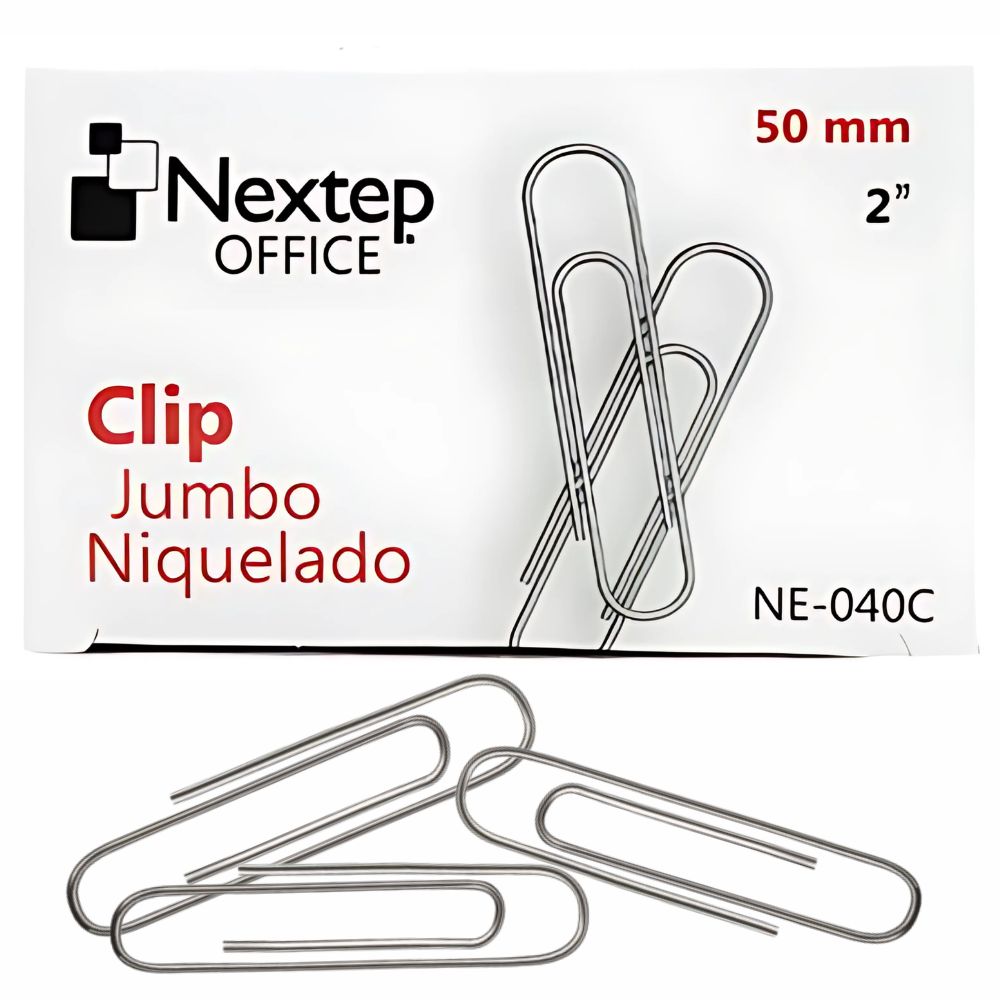 Dale a tus documentos la sujeción que necesitan con el **Clip Jumbo Niquelado Nextep**. Este clip de **50 mm (2")** es la herramienta ideal para mantener organizadas grandes cantidades de papel, garantizando un agarre firme y seguro.