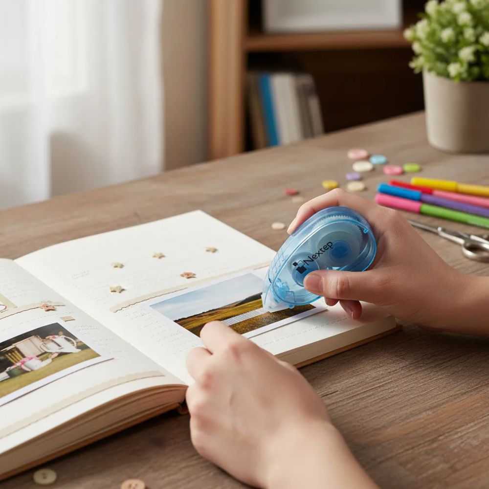• **Manualidades y Scrapbooking:** Fijación de fotos, adornos y elementos decorativos en álbumes.