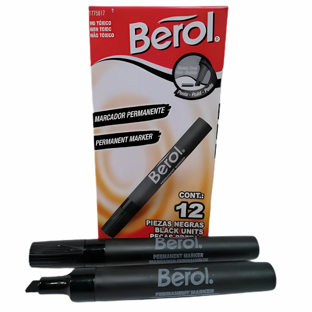 Marcador Permanente Berol Negro | Caja con 12 | Punta de Cincel