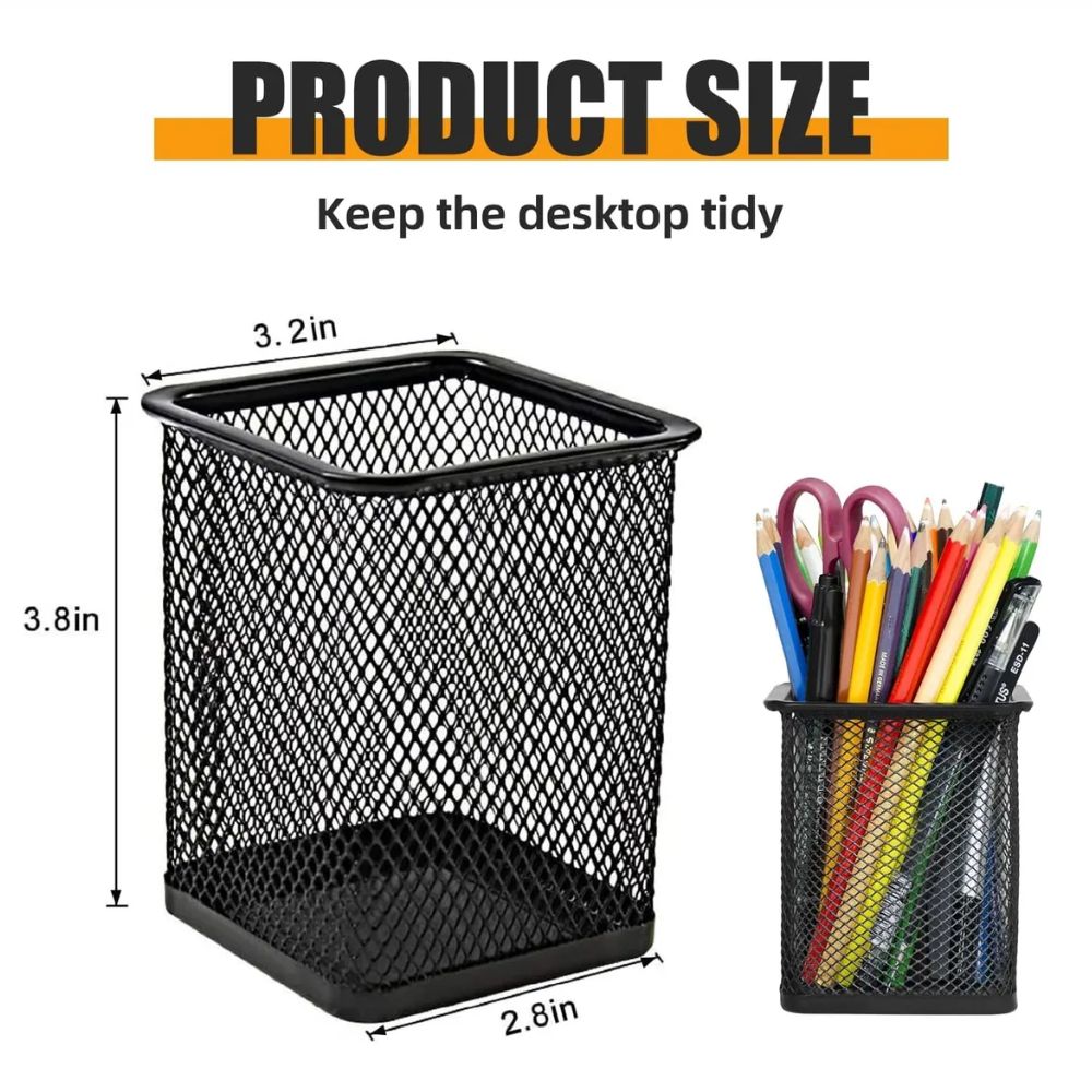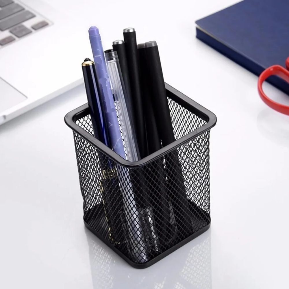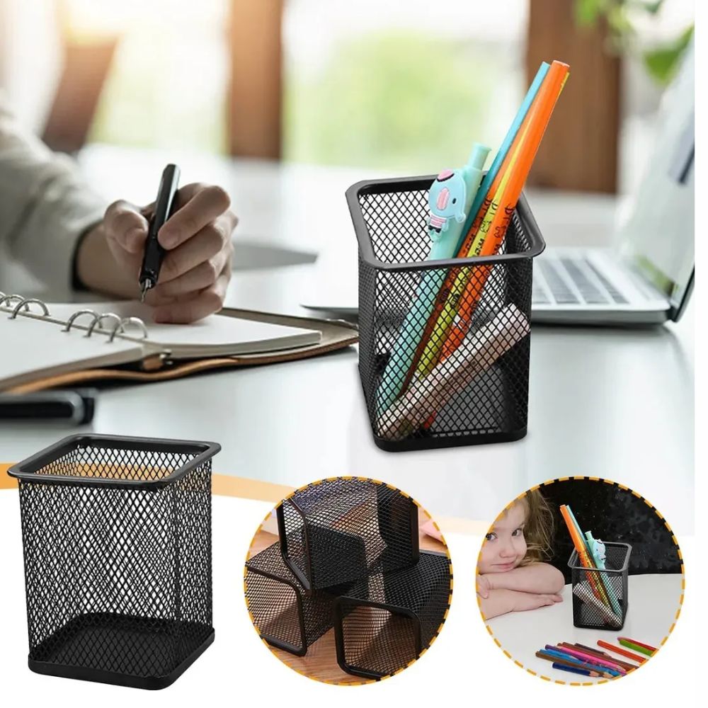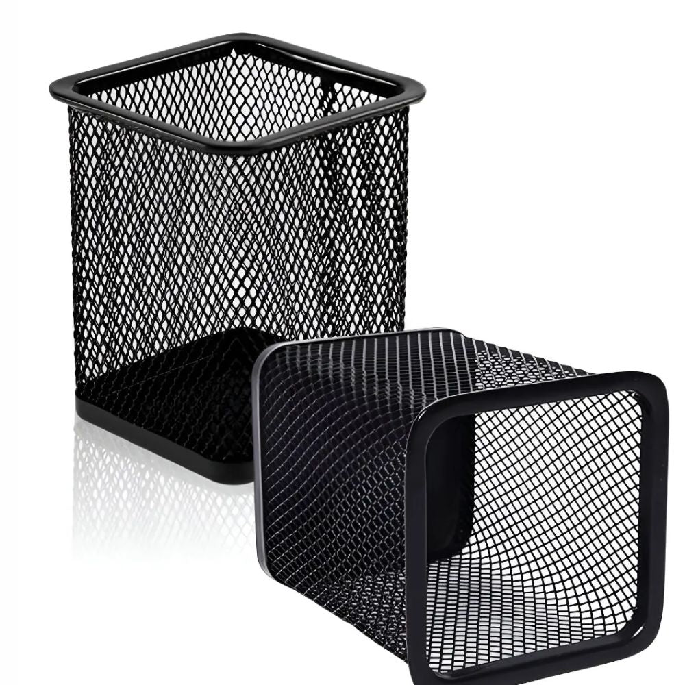 Portalápices de Malla Metálica | Diseño Cuadrado | Color Negro
