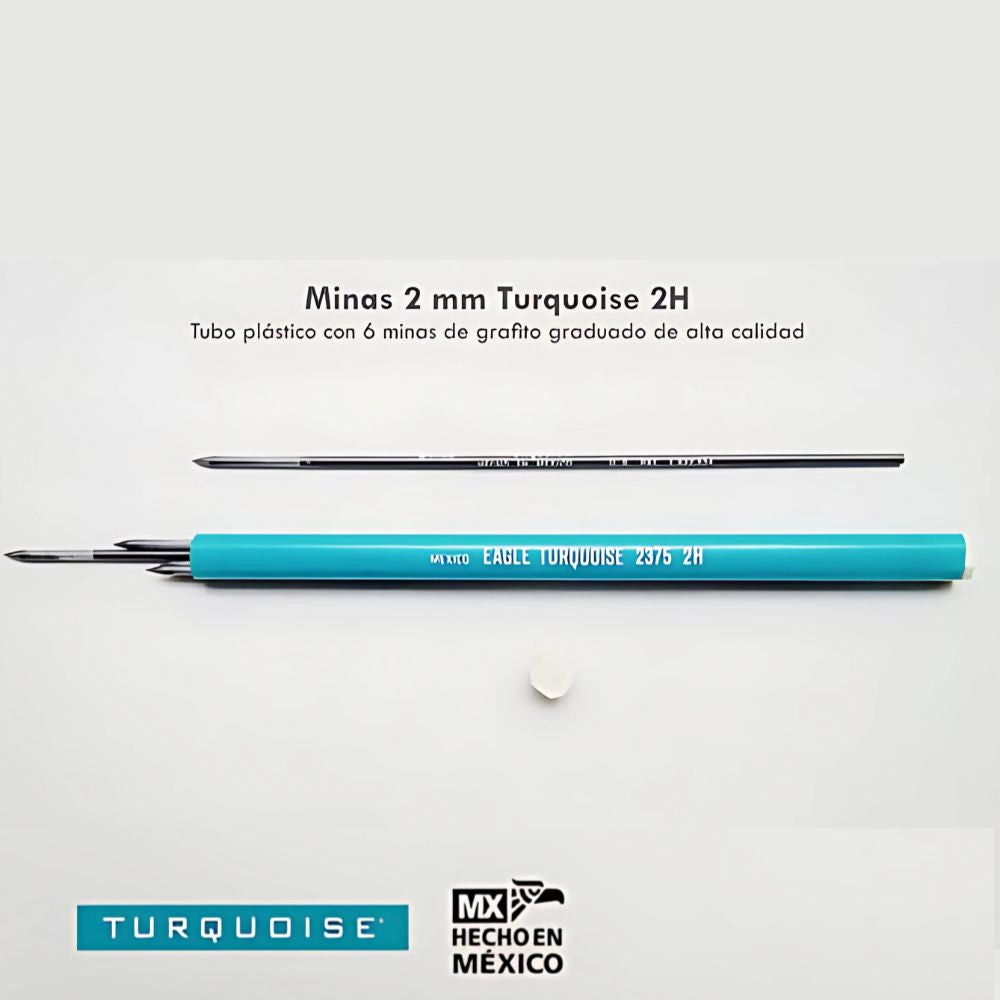 Eleva la calidad de tus proyectos con las **Puntillas Profesionales Turquoise**, la elección de artistas y diseñadores. Este práctico paquete incluye **5 minas de grafito graduado HB de 2mm**, perfectas para trazos precisos y uniformes.