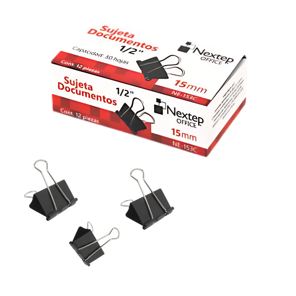 Sujeta Documentos Nextep Mini 15 mm (1/2") – Caja con 12 Piezas